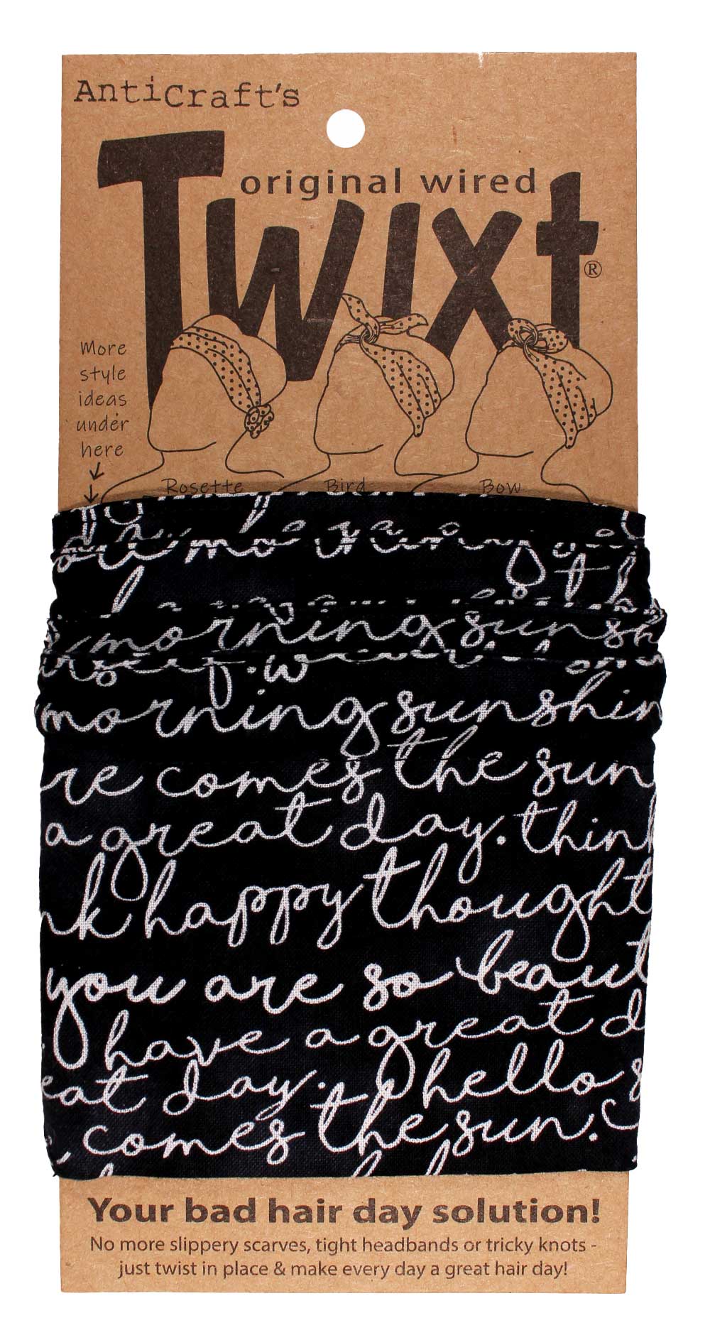 Twixt - the hair styling revolution! No more knots! This wired head wrap means you just twist it to secure and you're out the door looking divine. No more headaches from tight headbands, no more sliding scarves, no more tricky knots... just comfortable, fabulous, effortless style!